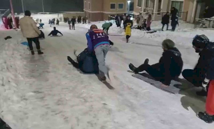 Karın tadını çıkarmak isteyen küçük-büyük her yaştan vatandaş soluğu dışarıda aldı. Profesyonel kızakların yanı sıra, evlerinden getirdikleri naylon poşetler, leğenler ve kendi imkanlarıyla yaptıkları kızaklarla yokuşlardan aşağı kayan çocuklar, dondurucu soğuğa aldırış etmeden saatlerce eğlendi.